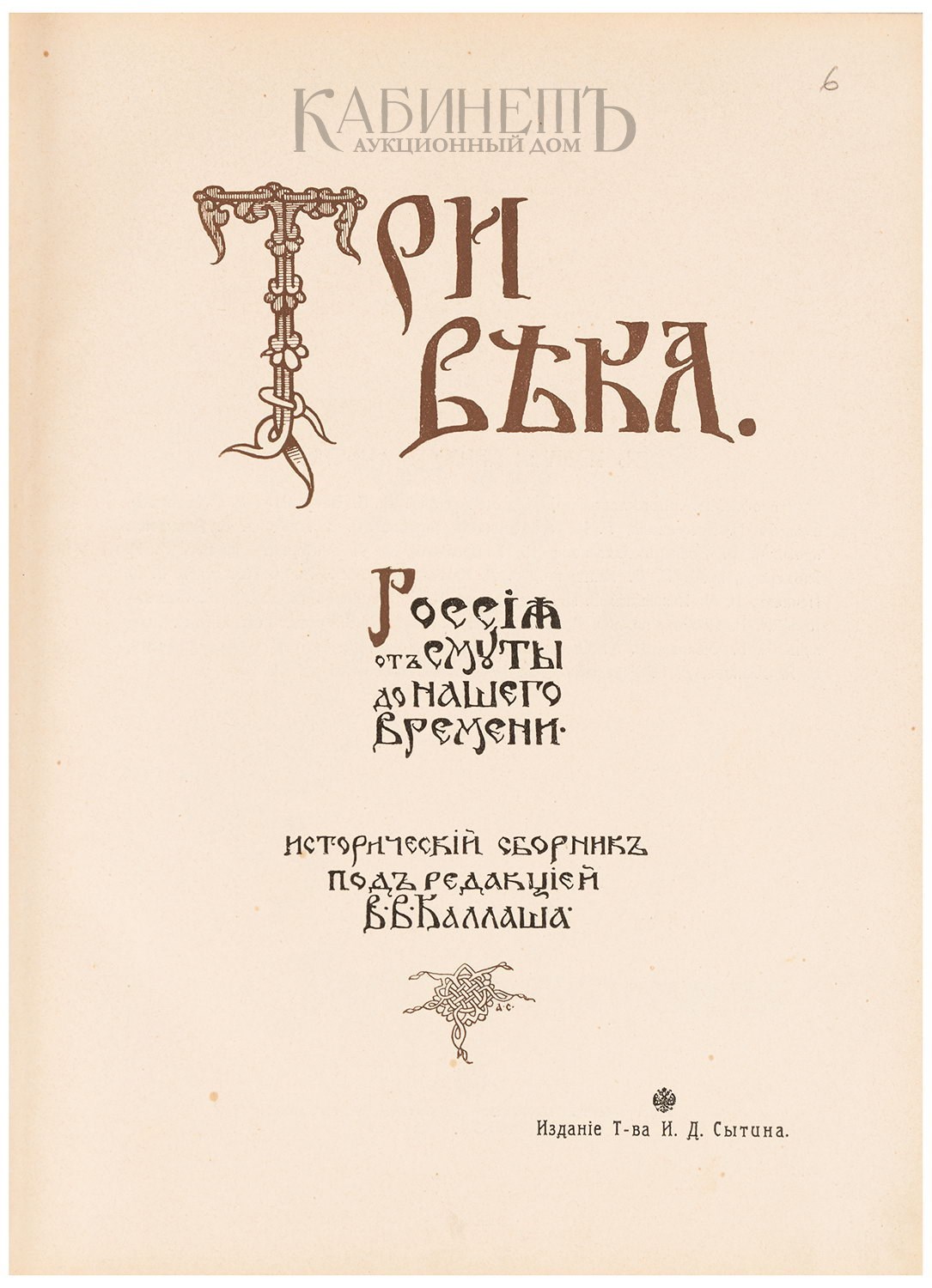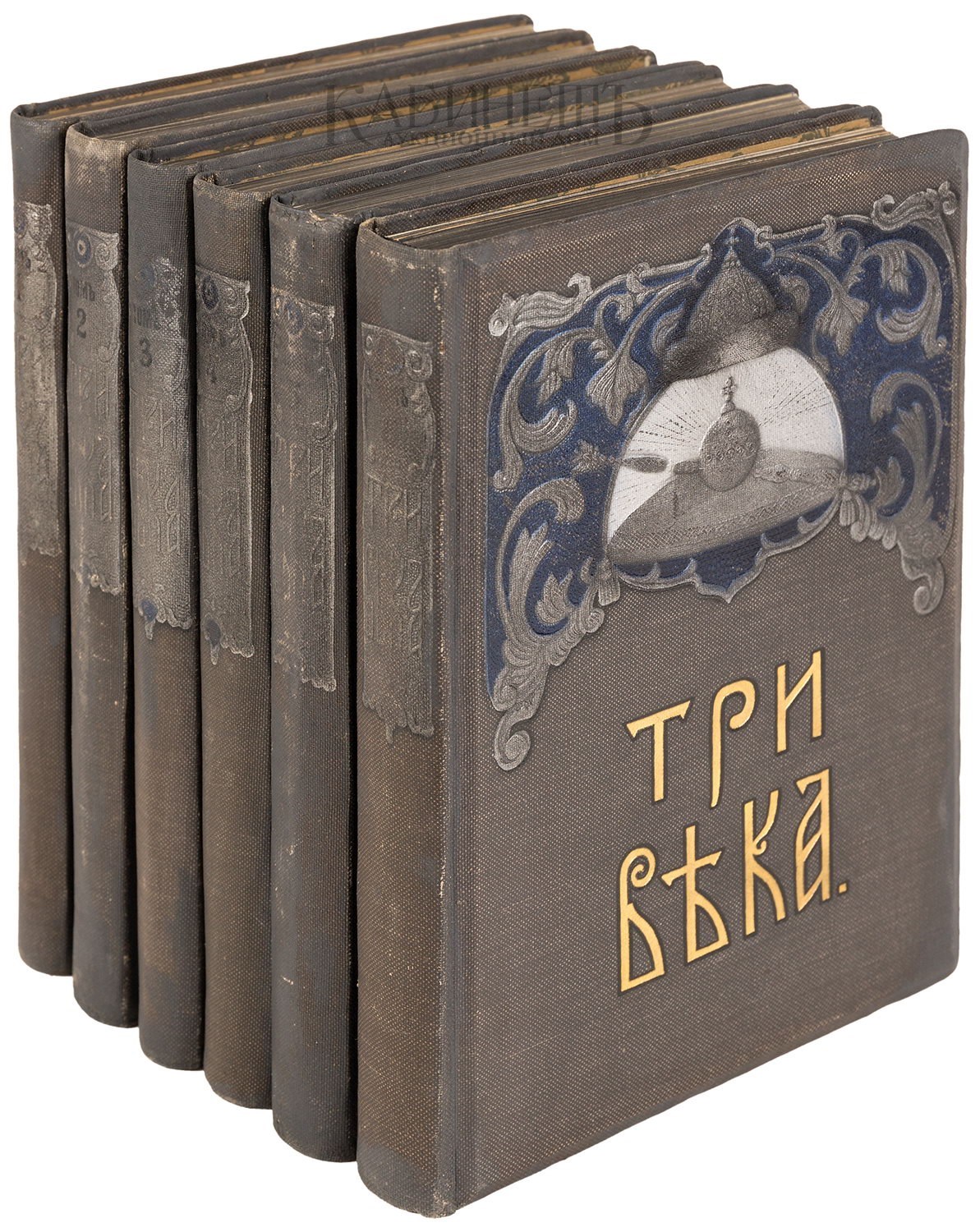 Роскошно иллюстрированное юбилейное издание, посвященное 300-летию царствования Дома Романовых и специально напечатанное к этой знаменательной дате. Этот монументальный труд представлял собой всестороннюю историческую характеристику и подведение итогов трехвекового общественного и государственного развития страны под державой Дома Романовых. В создании юбилейного издания принимали участие крупнейшие историки начала ХХ века, причислявшие себя к московской исторической школе В.О.Ключевского: профессора М.М.Богословский, М.В.Довнар-Запольский, Н.Ф.Каптерев, М.К.Любавский, С.Ф.Платонов, С.В.Рождественский, академик А.Н.Веселовский и другие. Книга во многом стала венцом дореволюционной исторической науки, в ней были обобщены и популярно изложены все накопленные к тому времени знания по русской истории XVII – XIX вв. Издание прекрасно оформлено в стиле модерн и иллюстрировано портретами исторических деятелей, цветными иллюстрациями на отдельных листах с картин знаменитых русских художников, зображениями предметов быта, атрибутов власти и т.д. Книга является лучшим из многочисленных исторических изданий, выпущенных к юбилею 300-летия Дома Романовых, поскольку сочетает в себе весьма подробное повествование и богатое оформление.