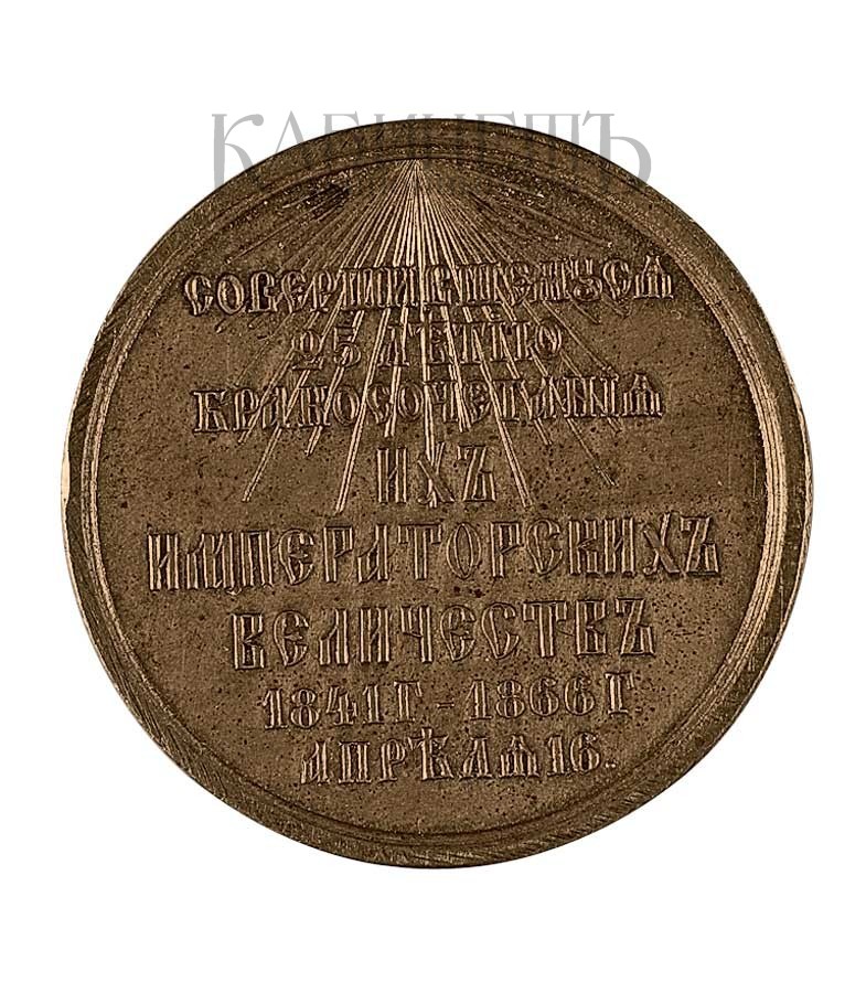 Санкт-Петербургский монетный двор. 1866 г.Диаметр 28,2 мм. Вес 11,15 г. Бронза, золочение.