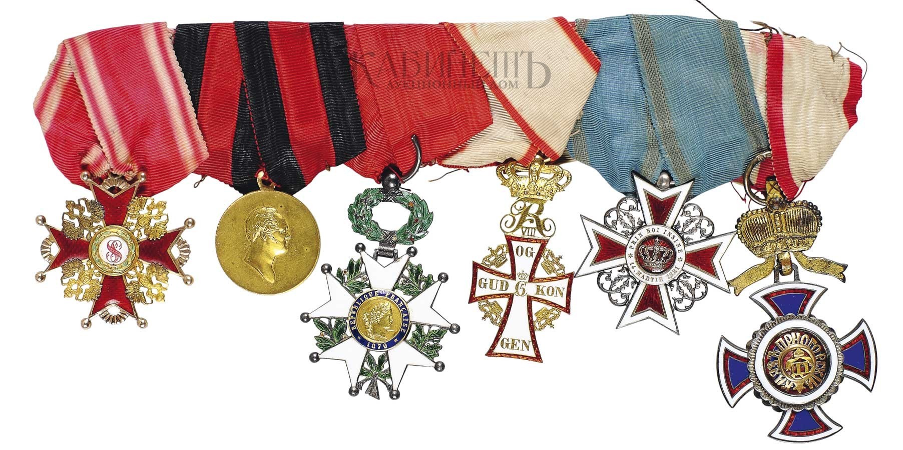 142. 1. Орденская колодка на шесть награждений