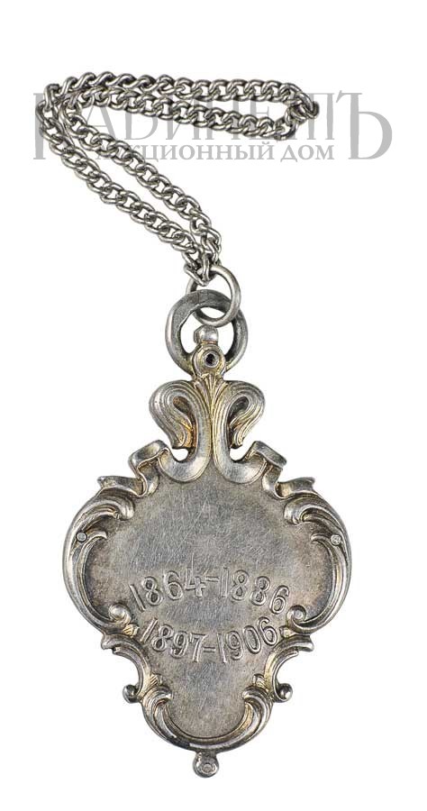 Клейма: на лицевой стороне на ушке – пробирное «84» Московского окружного пробирного управления, для маловесных изделий из драгоценных металлов, с женской головкой в кокошнике, повернутой вправо, с буквой «дельта»; знак удостоверения; именник «ВР».