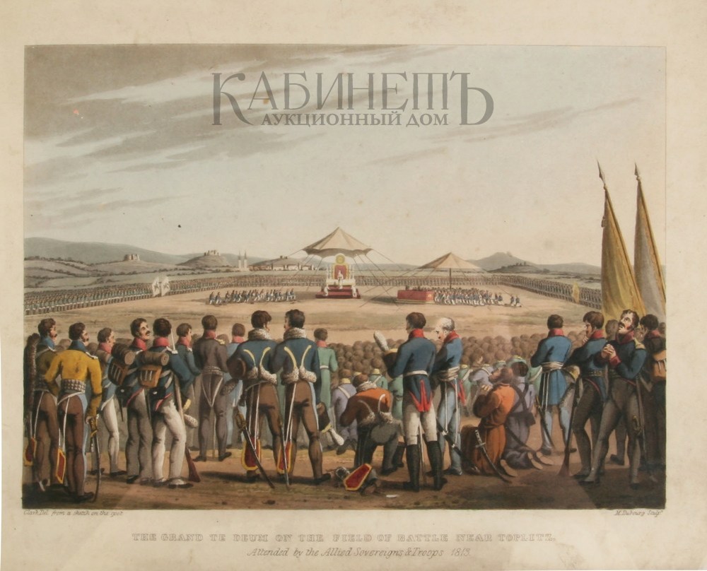 The Grand Te Deum on the field of batlle near Toplitz. Attended by the Allied Sovereigns & Troops 1813. [Союзные государи во главе своих армий совершают торжественный молебен в честь победы под Кульмом в 1813 г.]