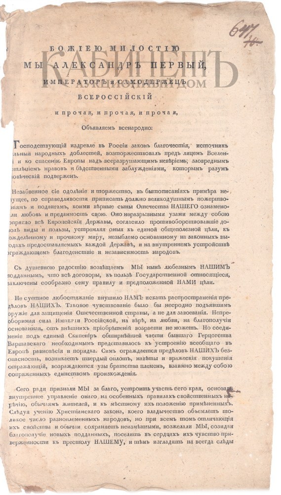 [1] лист. Размер: 35,5 х 19,8 см Бумага, типографская печать, орешковые чернила. Бумага ветхая, заломы.