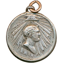 По модели графа Ф.П. Толстого. Российская империя, частная мастерская. Вторая четверть XIX в. Диаметр 12 мм. Вес 1,3 г .Серебро.