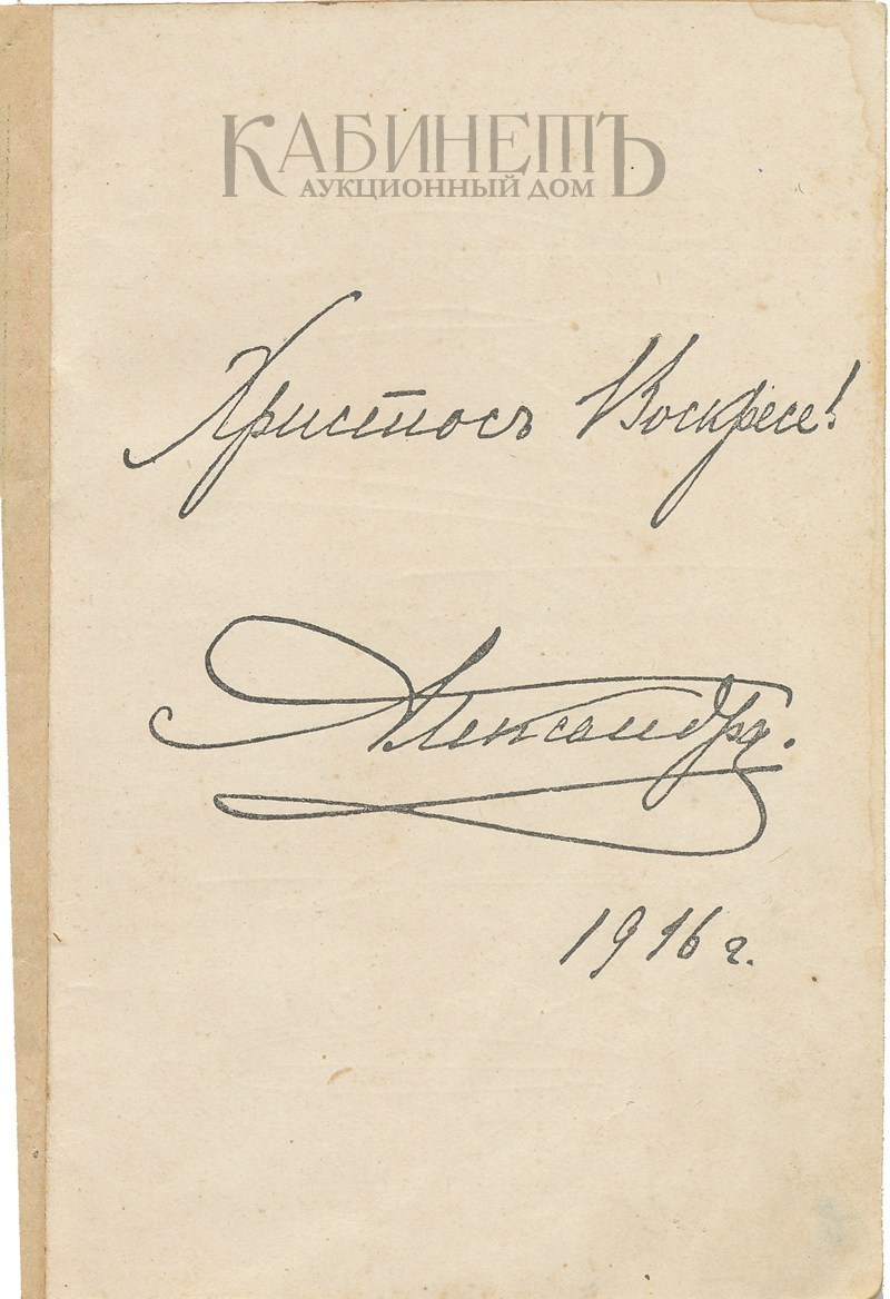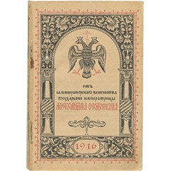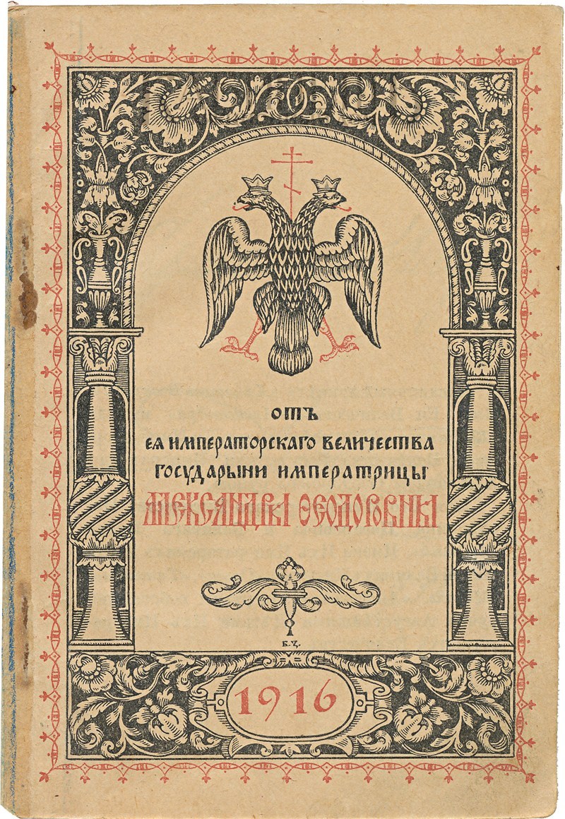 Благотворительное издание для подарков солдатам в военных госпиталях. В издание вошли: Молитвенная памятка; церковный календарь на 1916 год; приказы императора Николая II по Армии и Флоту; образцы прошений. Иллюстрации в тексте, факсимильные подписи императрицы Александры Федоровны и великих княжон.