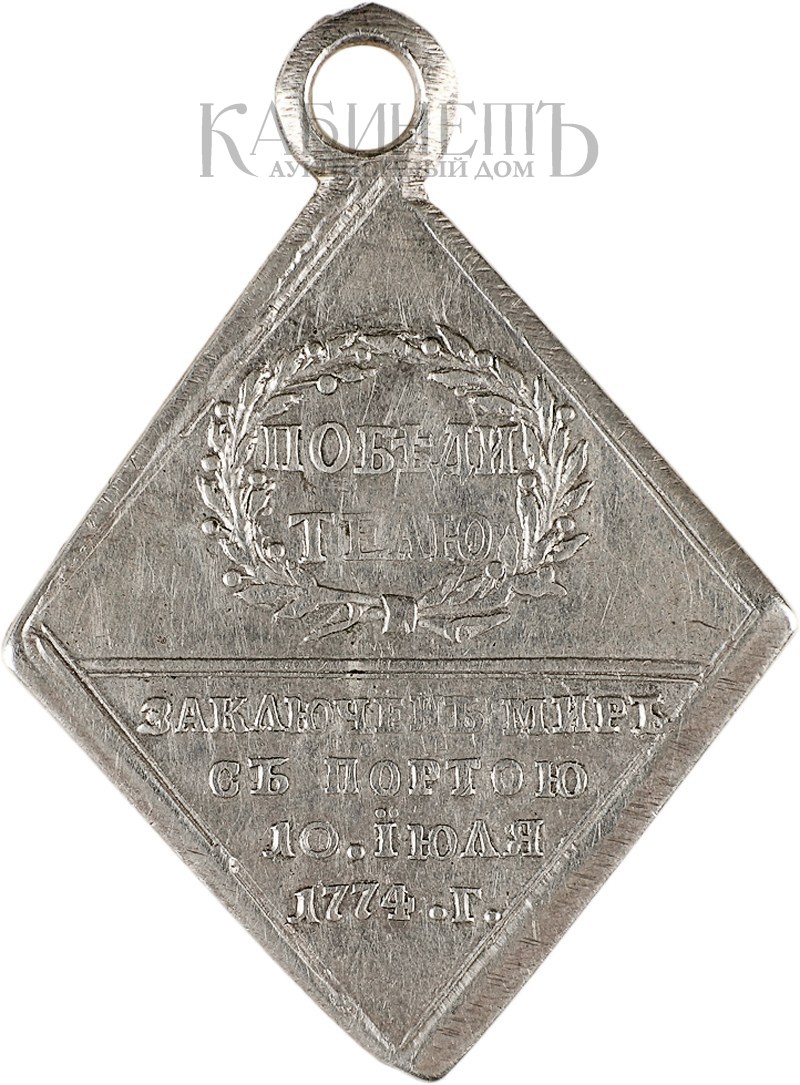 Гравер: С.Ю.Юдин Санкт-Петербургский монетный двор. 1774–1778 гг. Размер 42,2 х 30,8 мм. Вес 10,93 г. Серебро.
