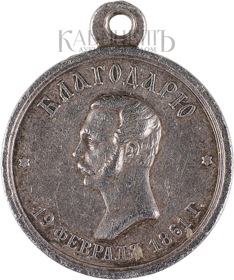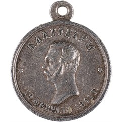 Учреждена 17 апреля 1861 г. Серебряными медалями награждали членов и кандидатов губернских дворянских комитетов по устройству крестьянского быта, делопроизводителей этих комитетов, а также правителей канцелярий генерал-губернаторов и губернаторов, если на них было возложено делопроизводство по крестьянскому делу. Было отчеканено около 1500 серебряных медалей.