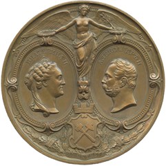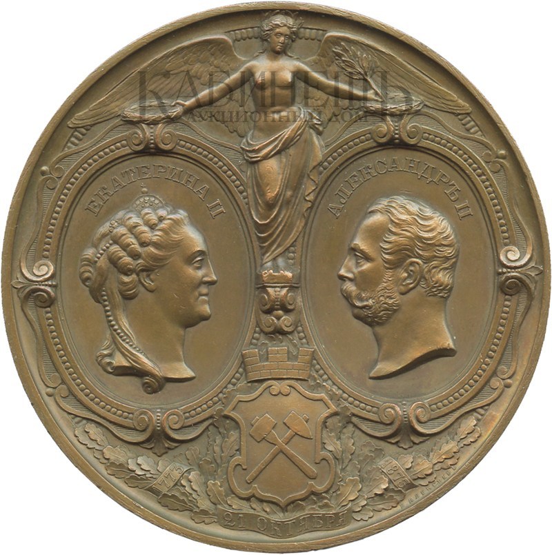 Гравер лицевой стороны В. Алексеев, оборотной стороны – А. Грилихес. Санкт-Петербургский монетный двор. 1873 г. Диаметр 79 мм. Вес 211,45 г. Бронза.
