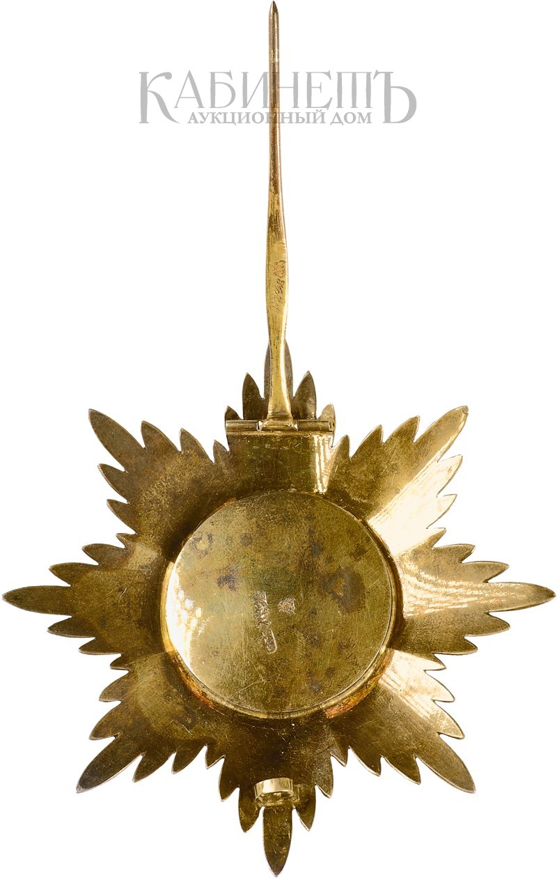 Клейма: на оборотной стороне звезды – пробирное «84» Санкт-Петербургского окружного пробирного управления с гербом города; развернутый именник «KEIBEL» и герб Российской Империи (знак поставщика Кабинета Е.И.В. и Капитула Императорских и Царских орденов). На заколке: развернутый именник «KEIBEL» и герб Российской Империи (знак поставщика Кабинета Е.И.В. и Капитула Императорских и Царских орденов) и знак удостоверения.