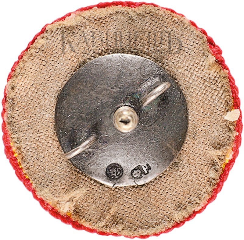 Клейма: на оборотной стороне – пробирное «84» для маловесных изделий из драгоценных металлов, с инициалами пробирного инспектора «ЯЛ» (Яков Ляпунов); именник «Ф.Р.» На закрутке – знак удостоверения, именник «Ф.Р.»