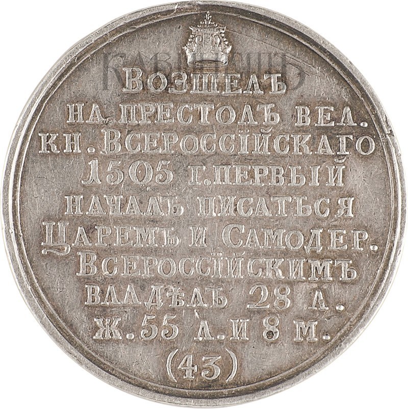 Гравер: И.Б.Гасс Санкт-Петербургский монетный двор. Конец XIX в. Диаметр 38,3 мм. Вес 21,04 г. Серебро.