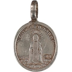 Киев, частная мастерская. Конец ХIX – начало ХХ вв. Размер 21,5 х 13,5 мм. Вес 0,88 г. Серебро. Клейма: на оборотной стороне – пробирное «84» Киевского окружного пробирного управления.