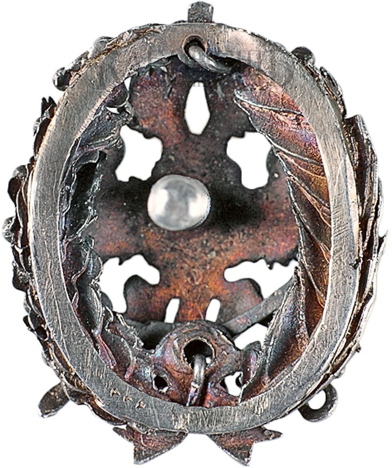 Российская империя, частная мастерская. Конец ХIX – начало ХХ вв. Размер 25 х 20 мм. Вес 7,65 г. Серебро, остатки позолоты.