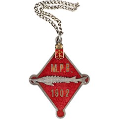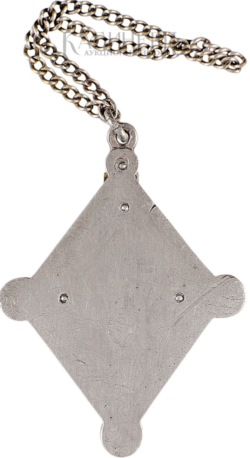 Российская империя, частная мастерская. 1902 г. Размер 33 х 24,5 мм Вес 4,65 г Серебро, золото, эмаль.