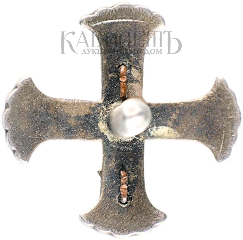 Российская империя, частная мастерская. 1908 –1917 гг. Размер 19 х 19 мм. Вес 4,79 г. Серебро, эмаль.