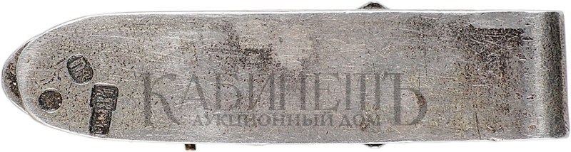 Клейма: на оборотной стороне – пробирное «84» Ленинградского окружного пробирного управления, для маловесных изделий (с женской головкой в кокошнике, повернутой вправо), знак удостоверения; именник «ПВ».