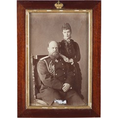 Фотография оформлена в старинную деревянную раму с позолоченными накладками.