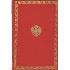 Блок закреплен в издательской коленкоровой папке с золотым тиснением по крышкам пере-