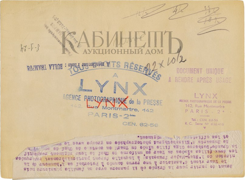 На оборотной стороне – штампы фотоагентства «Lynx».
