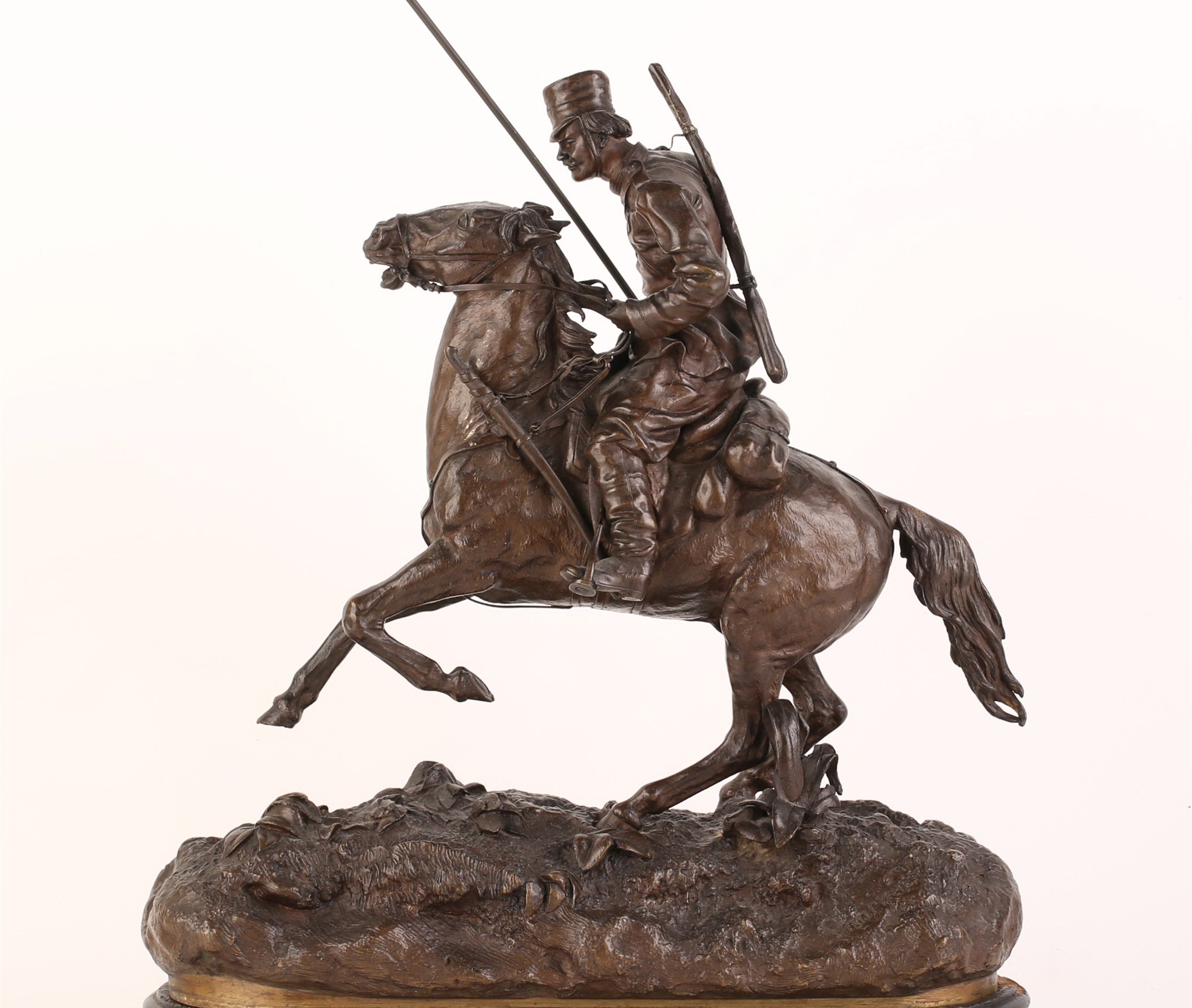 Грачёв Василий Яковлевич (1831(?)-1905) — известный русский мастер мелкой пластики. Мальчиком отдан в ученики придворному мастеру по чеканке Андрееву в Санкт – Петербурге, у которого обучался шесть лет. В дальнейшем работал у серебряных дел мастеров, в том числе у И.С.Сазикова. Скульптурой занимался как самоучка. Выполнял модели из воска для известных фабрикантов К.Ф.Верфеля, П.А. Овчинникова, И.П Хлебникова, под маркой заведений которых известно большинство его произведений, переведенных в серебро и бронзу. Эти работы неоднократно награждались на художественно–промышленных выставках. В 1885 г. открыл собственную мастерскую – студию. С самостоятельными работами выступил на Художественно-промышленной выставке 1885 г. в Санкт-Петербурге. За представленную композицию получил серебряную медаль. Основная тема произведений – жанровые сцены с изображением людей, людей, эпизоды исторической и военной тематики.